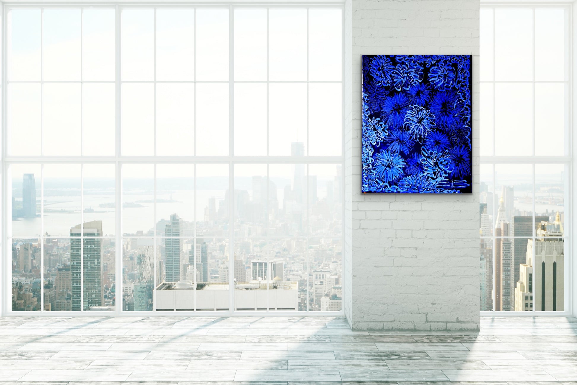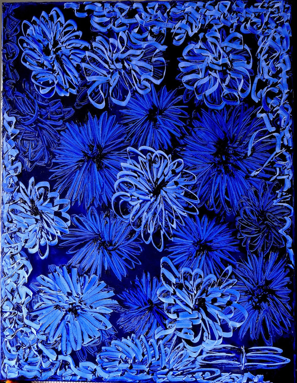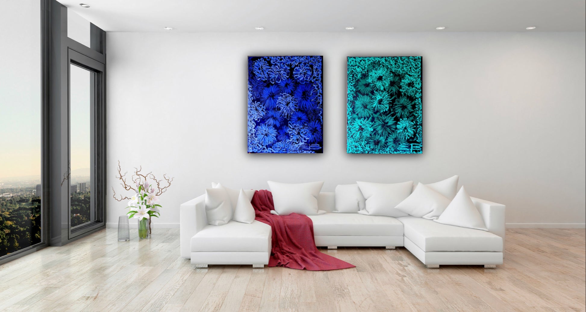 I'm often inspired by graffiti patterns. I picked up some of the details in these patterns/ formations and balanced it with the oil. Merging these two expressions has been an exciting process. Working in strong saturated jewel colors. Colors that illuminate the work, even in dark rooms, were something I decided early in the creation process.