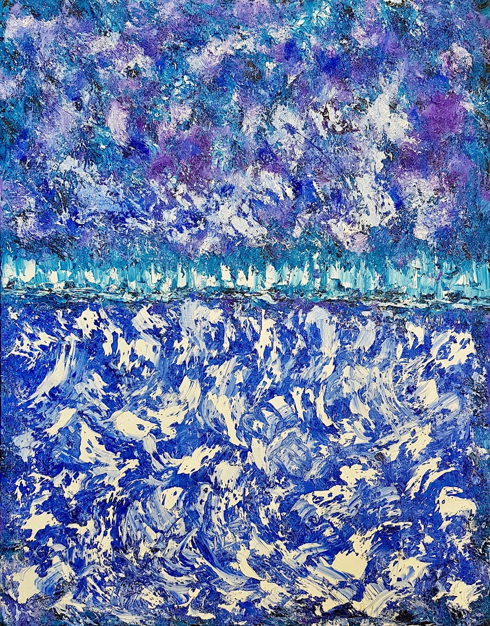 ”Costa Navarino” oil painting inspired by the amazing blue colours of Costa Navarino, the Mediterranean Sea and our journeys in the region.