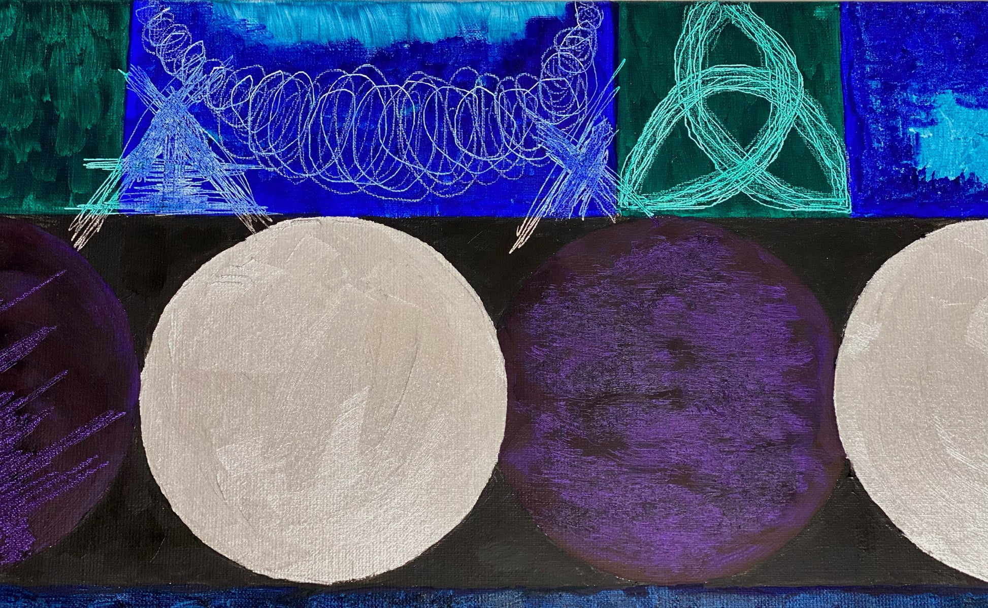 As you can see, I have worked in jewel tones such as emerald, amethyst, sapphire. Working in jewel tones is something I have always loved and been fascinated by. Color elements such as turquoise and silver are also represented.