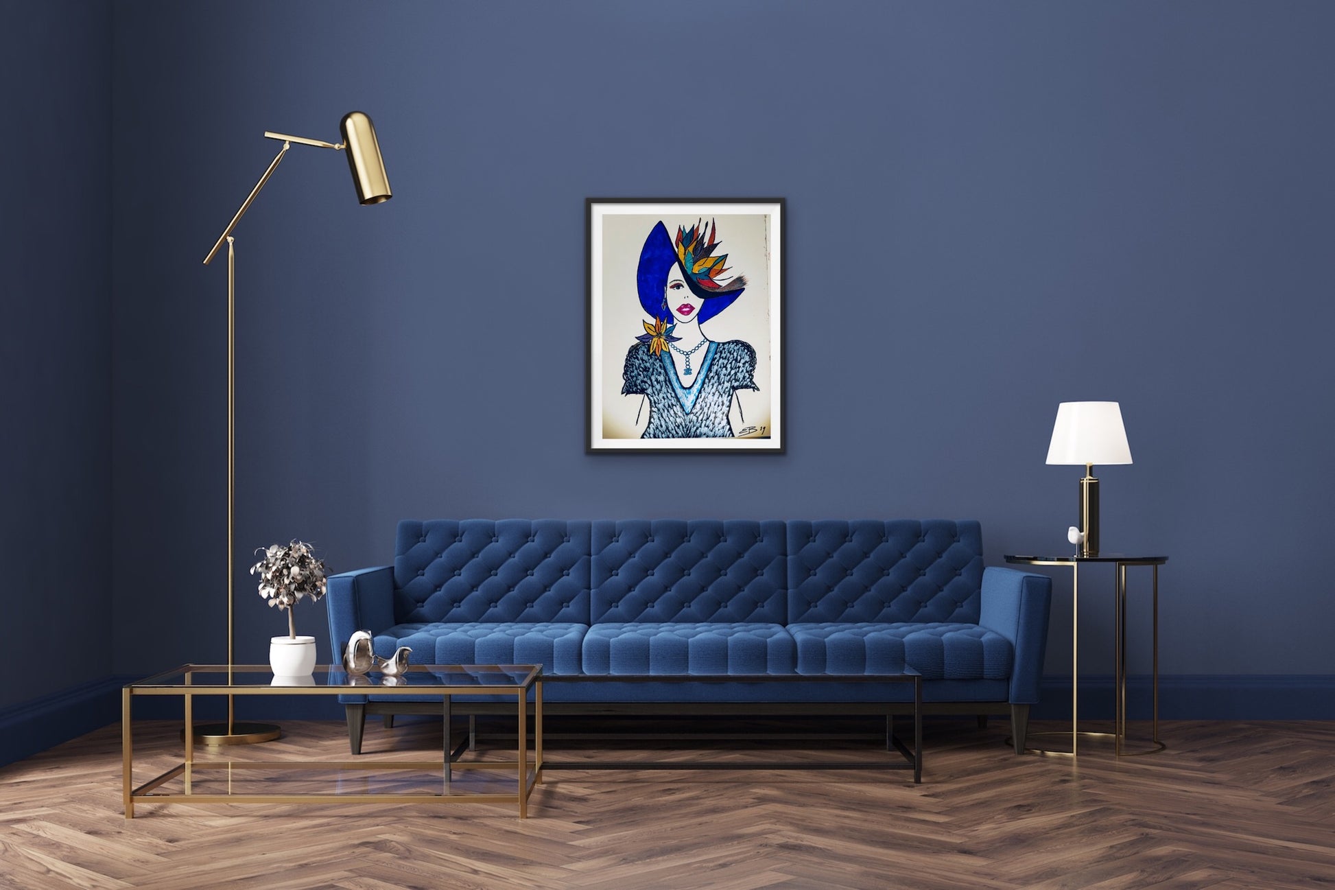 In this artwork I have worked in ink, pencil and aquarelles with a special pearl-shimmering effect. Everything to depict the luster and the feeling in the fantastic satin fabric. The artwork is framed in black oak frame with a beautiful Passepartout.